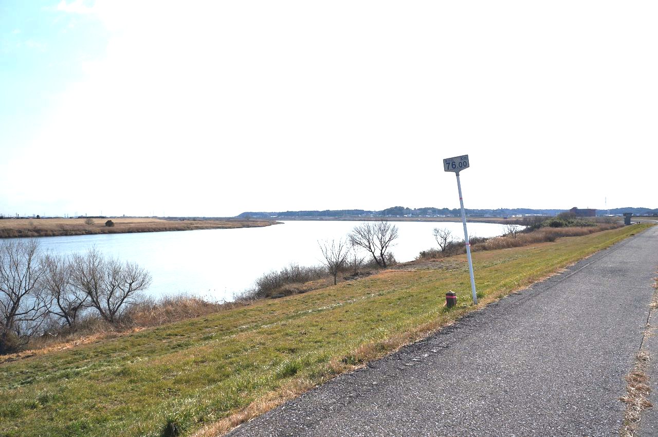 道沿いには河口までの距離の標識があり、残り86kmの表示。