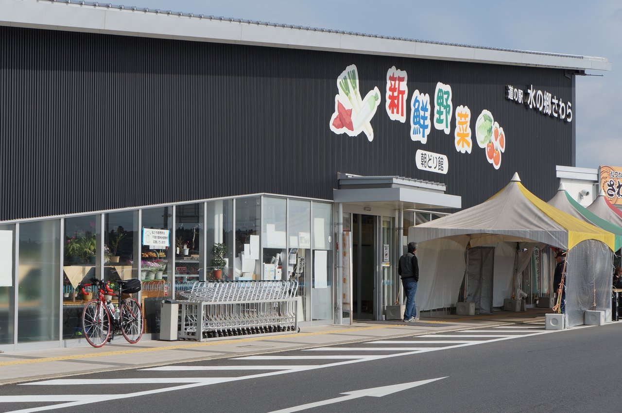11時54分、道の駅 水の郷さわらに到着。休憩がてらおにぎりと唐揚げを食す。