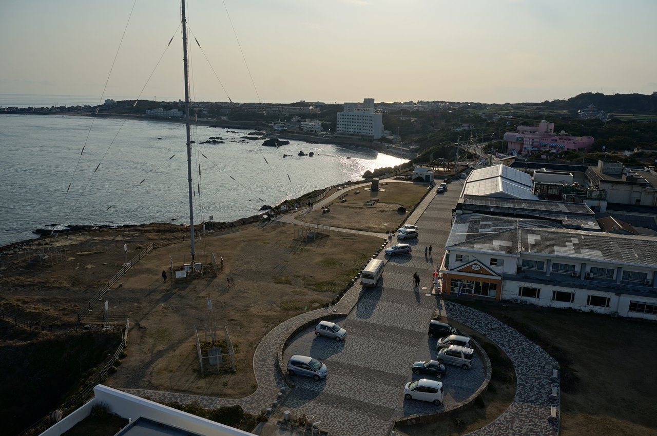 灯台からみた風景。奥には犬吠埼マリンパークが見えます。