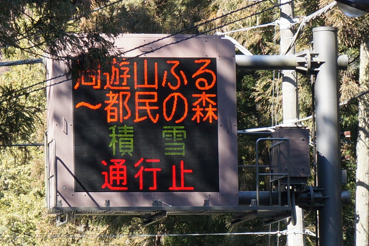 途中にあった電光掲示板。どうやら風張峠は先日の降雪の影響で通行止めのようです。