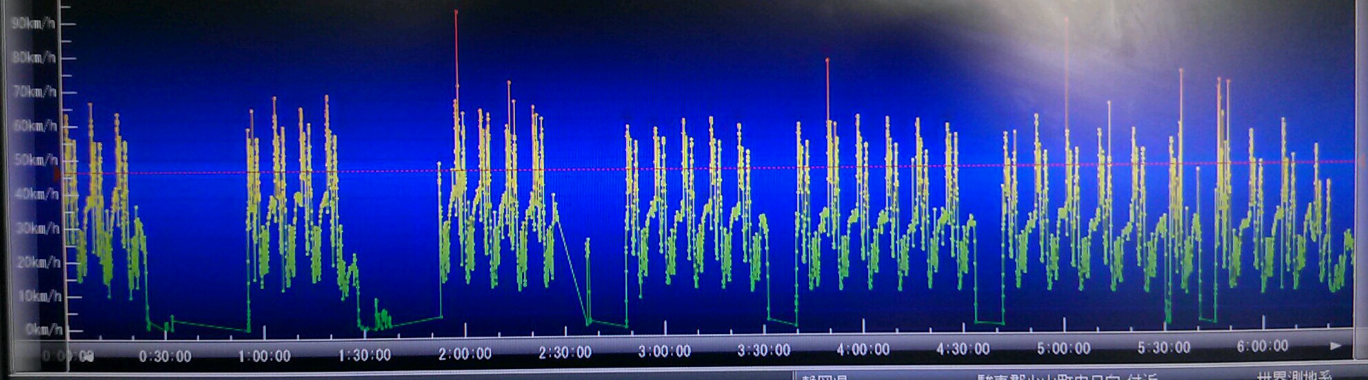 途中、LAPボタンを押したつもりが、STOPボタンを押してしまっていて、1周分記録不明になる。汗