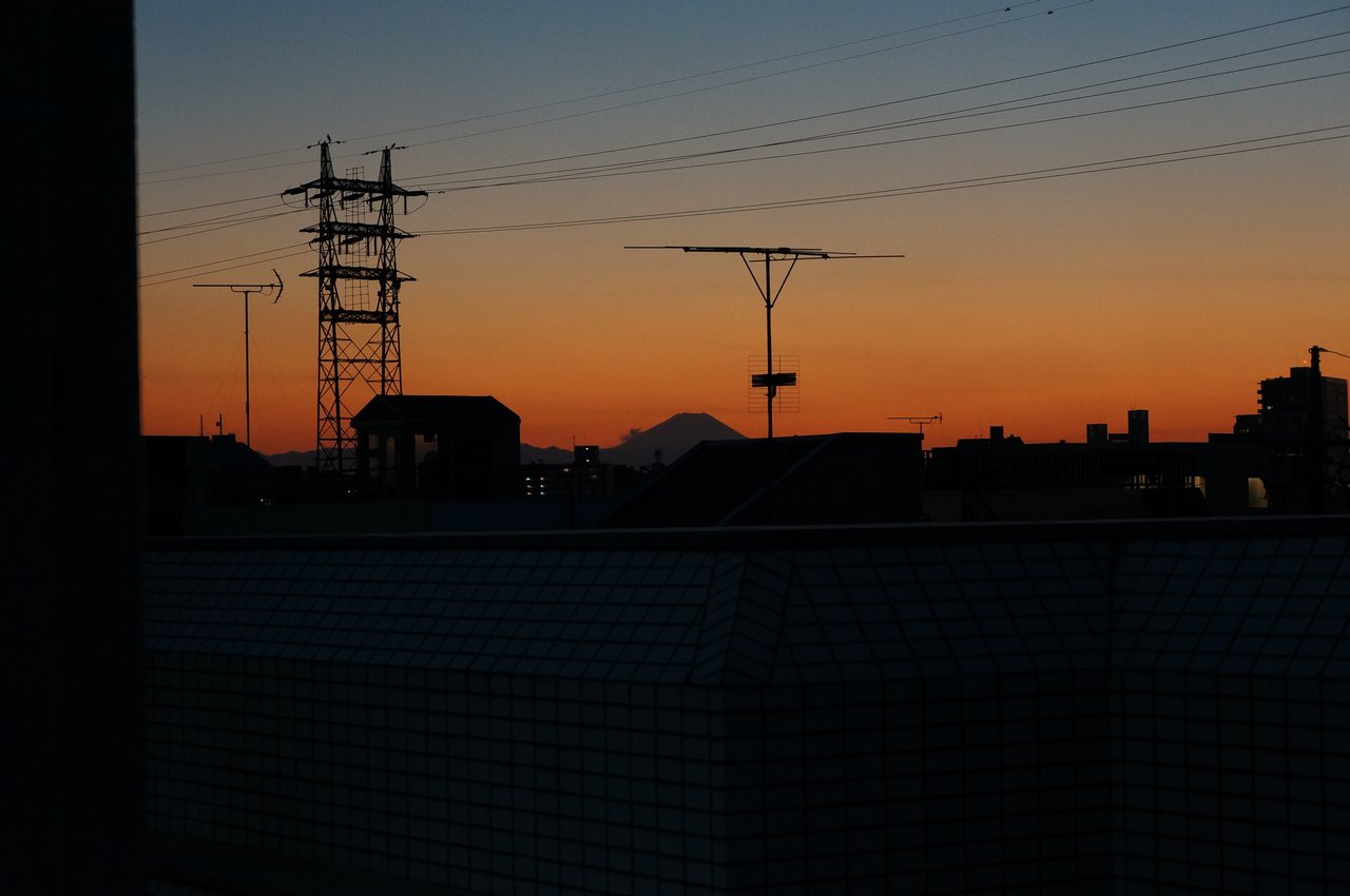 今回は行き帰り自走でいったんですが、自宅に帰宅したときにちょうど富士山と夕焼けがきれいに見えたので撮影してみました。
